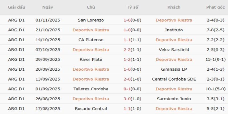 Năm trận đấu gần nhất của Riestra nhấn mạnh sự tập trung vào cấu trúc và sự nỗ lực hơn là lối chơi tấn công tự do. Chiến thắng gần nhất của họ – chiến thắng sít sao 1-0 trước Instituto de Córdoba thể hiện tính kỷ luật phòng ngự và sự tự tin chiến thuật, thay vì sự tinh tế trong tấn công.
