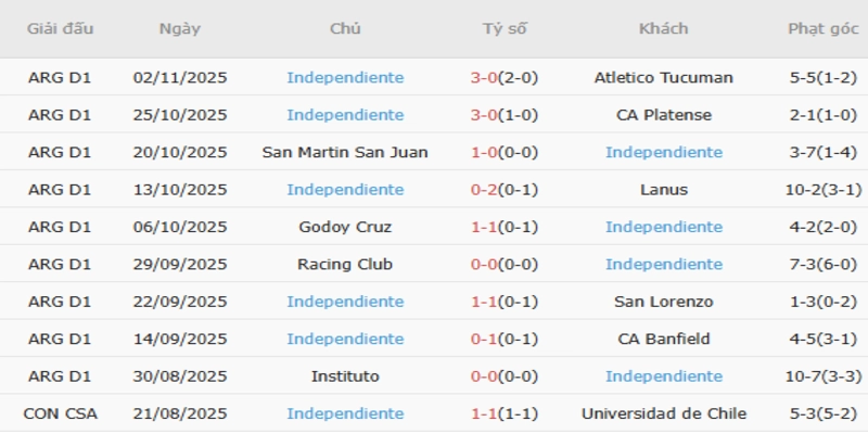 Trong khi đó, Independiente vẫn duy trì được khả năng kiểm soát bóng và tấn công linh hoạt, thể hiện qua 55 cú sút và 24 quả phạt góc ấn tượng trong năm trận gần nhất, cho thấy tham vọng và sự đa dạng hơn trong tấn công.