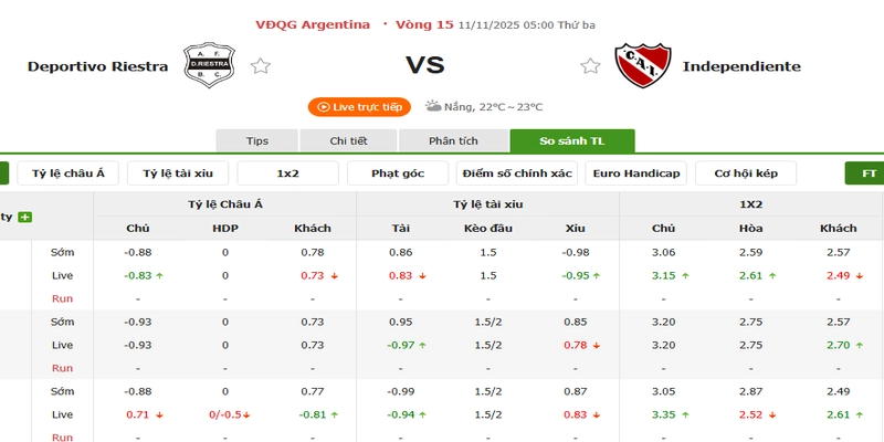 Independiente đang chiếm ưu thế trong trận đấu quan trọng này. Sự gia tăng gần đây về số bàn thắng của họ, cùng với việc Riestra gặp khó khăn trong việc ghi bàn và phong cách thi đấu thận trọng, mang lại cho đội khách lợi thế.