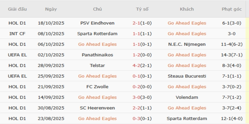 Kết quả gần đây của Go Ahead Eagles