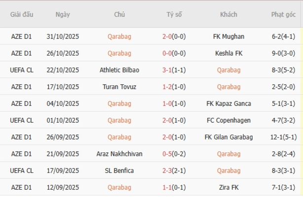 Kết quả gần đây của Qarabag