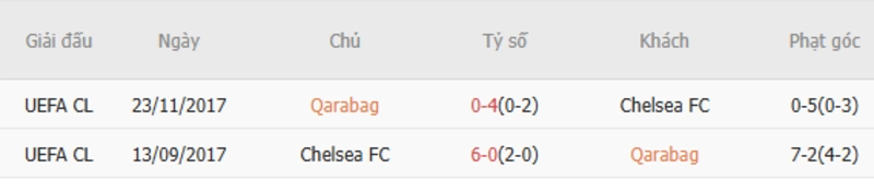 Tỷ kệ kèo Qarabag vs Chelsea